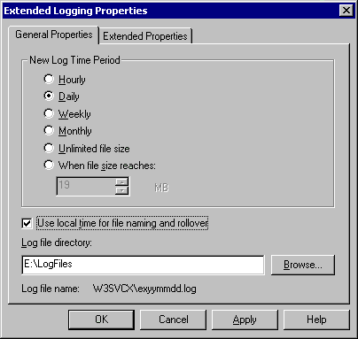 Follow the above steps to configure the Active log format and the extended properties for your log files.