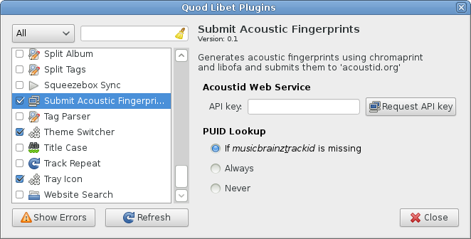 The image above shows the plugin manager, from where you can enable / disable / configure all available plugins.